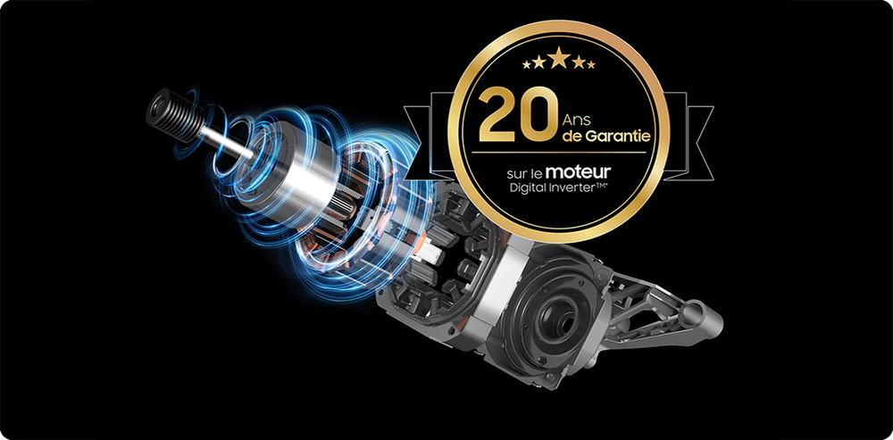Pourvu d'un aimant permanent évitant frottements et déperditions d'énergie, ce moteur à induction est particulièrement robuste et silencieux ! En atténuant la friction, il réduit le bruit, les vibrations et rend les pièces du lave-linge moins sujettes à l'usure. Il est garanti 20 ans[2].
