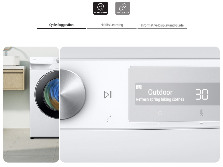 L'Auto Cycle Link[5] reconnaît le programme de lavage utilisé et propose automatiquement le programme de séchage adapté.