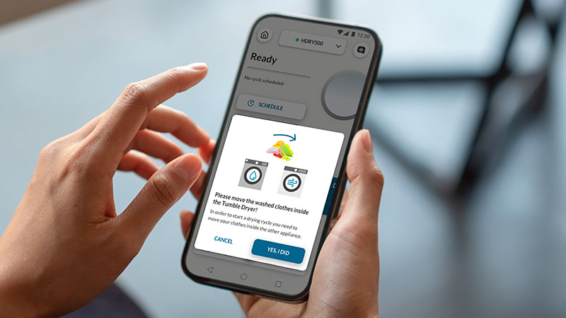 Synchronisez votre lave-linge avec votre sèche-linge et offrez le meilleur soin à vos vêtements.L’application hOn vous suggère le programme de séchage le plus adapté, en fonction de la quantité et du type de textile, garantissant des performances optimales et une efficacité accrue.